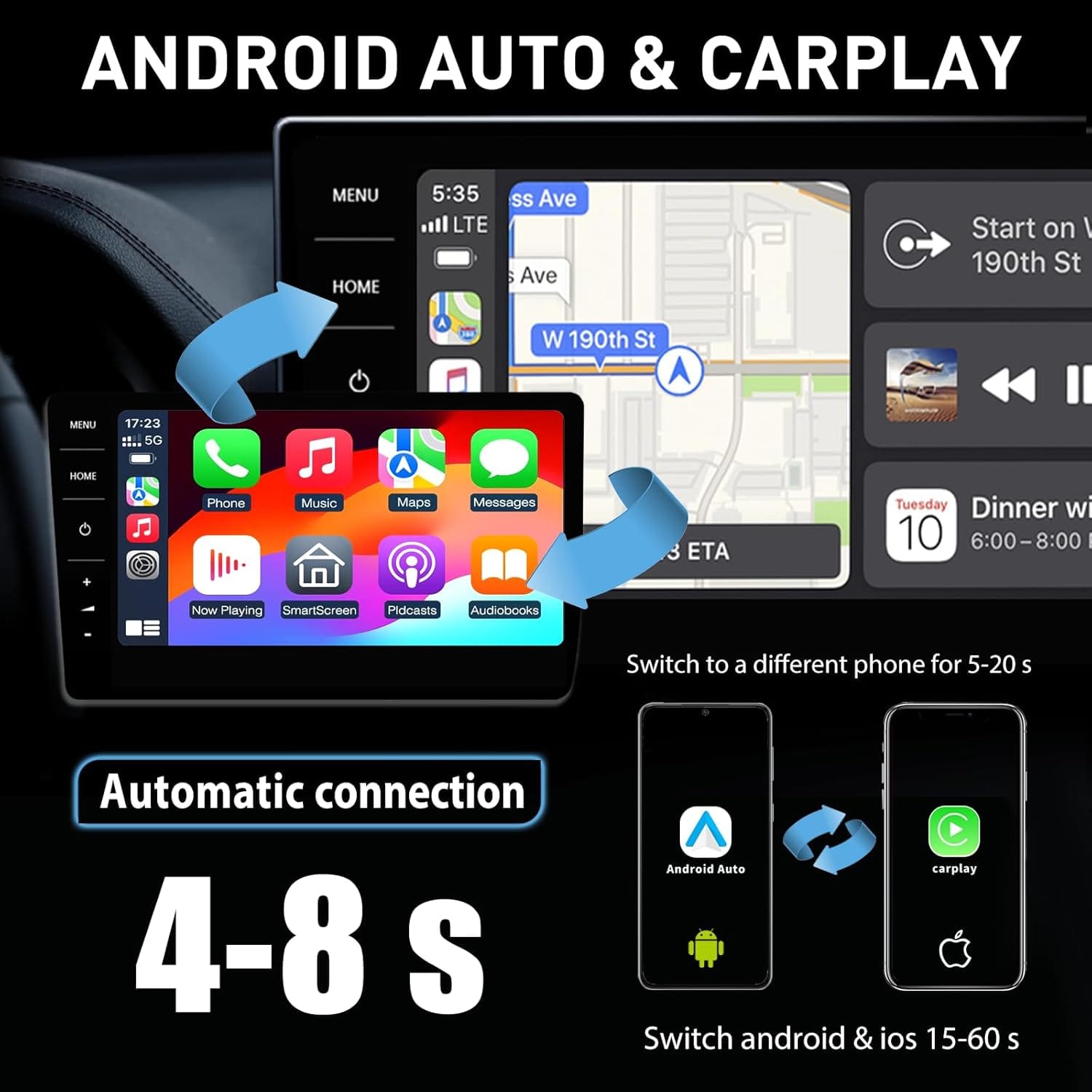 • Universal compatibility: Android car wireless is compatible with carplay/Android car equipped vehicles or speakers and supports both USB-C and USB-C car ports. Wireless Android car adapter is available for a variety of models. To achieve the best performance, we recommend phones with Android 11.0+ and iOS 10+