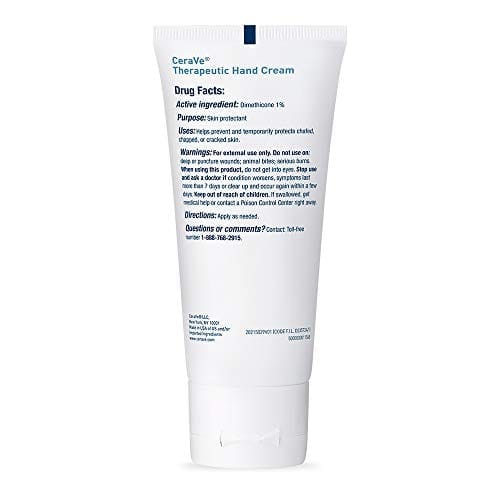 About this item [ SKIN PROTECTANT ] Non-greasy, fast-absorbing daily hand cream to help prevent and temporarily protect chafed, chapped, or cracked skin, especially to help relieve frequently-washed or over-worked hands. [ MOISTURE-RETAINING INGREDIENTS ] Formulated with hyaluronic acid to help retain skin’s natural moisture, niacinamide to help calm skin, dimethicone as a skin protectant, and ceramides to help restore the skin barrier. [ NEA SEAL OF ACCEPTANCE ] Accepted by the National Eczema Association. To help soothe over-washed hands, cleanse with CeraVe Hydrating Cleanser and apply CeraVe Therapeutic Hand Cream. [ 3 ESSENTIAL CERAMIDES ] Ceramides are found naturally in the skin and make up 50% of the lipids in the skin barrier. All CeraVe products are formulated with three essential ceramides (1, 3, 6-II) to help restore and maintain the skin’s natural barrier [ DEVELOPED WITH DERMATOLOGISTS ] CeraVe Skincare is developed with dermatologists and has products suitable for dry skin, sensitive skin, oily skin, acne-prone, and more.