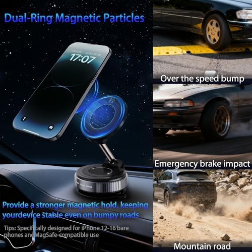 wofoboxair 2026 Upgraded Vacuum Magnetic Car Phone Holder 360° Reinforced 96LBS Ultra Suction Cup Phone Mount for MagSafe Cell Phone Holders for Your Car/Gym/Mirror Mount for iPhone & Android : Cell Phones & Accessories